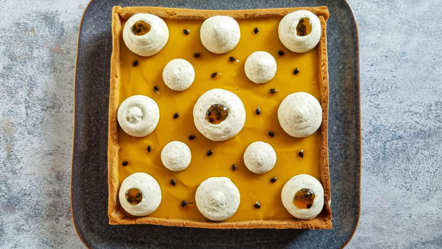 Voilà une tarte aux fruits de la passion qui va vous ravir avec goût et élégance !