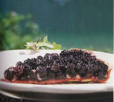 - 1. Préchauffer le four à 200°C.2. Dérouler la pâte dans un moule et piquer le fond de la tarte avec une fourchette. Enfourner et cuire à blanc pendant 20 minutes environ.3. Sortir la tarte du four et laisser refroidir.4. Pendant ce temps, préparer la garniture: dans une terrine, fouetter vivement la crème. Ajouter le sucre.5. Napper le fond de tarte du mélange précédent. Disposer les mûres en formant des cercles concentriques.6. Dans une casserole, faire chauffer la gelée de groseille sur feu doux. Napper les mûres de la gelée et servir aussitôt.