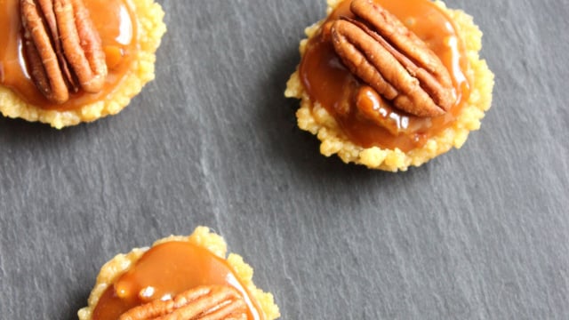 Terminez en ajoutant un cerneau de noix de pécan sur chaque tarte.