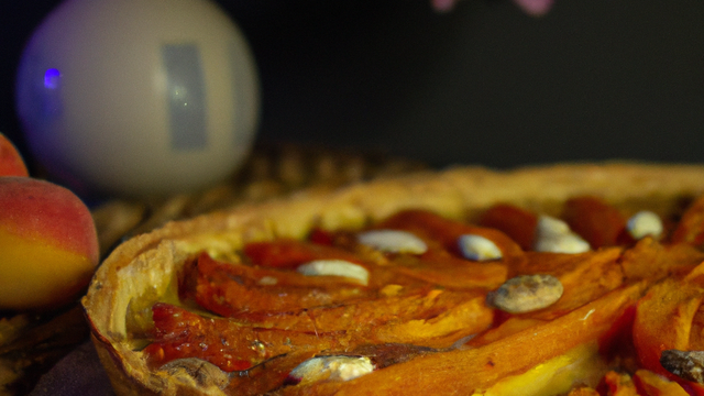 Sortez la tarte du four et badigeonnez les pêches de gelée et saupoudrez d'amande effilées et laisser refroidir avant de servir.