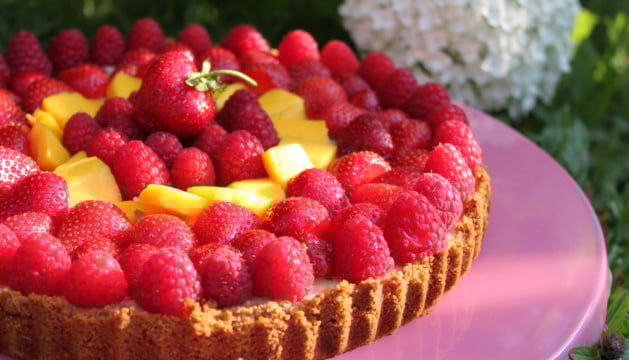 Pour la finition, disposer les petits fruits sur le dessus de la tarte. Vous pouvez y ajouter une gelée pour faire briller les fruits à votre convenance. Garder au réfrigérateur.