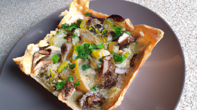 - Mettez la pâte dans un moule à tarte, saupoudrez d'un c à s de chapelure + une c à s de fromage, ajoutez le mélange, saupoudrez une deuxième fois de chapelure et de fromage recouvrez d'oeuf, puis râpez la noix de muscade et mettez cuire dans un four préchauffé à 200° jusqu'à ce quelle devient dorée. C'est prêt à déguster!