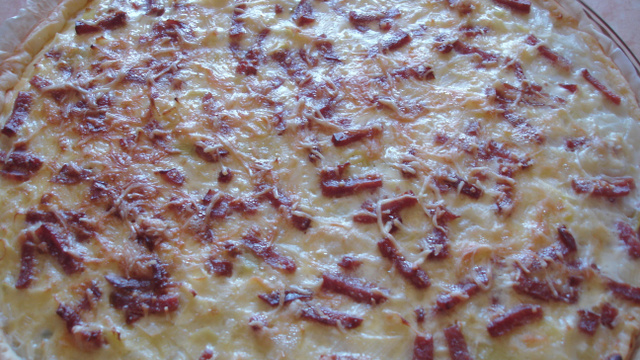 Bien piquer la pâte (le fond et les bords) afin d'éviter qu'elle ne gonfle trop.
