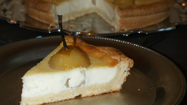 Placer les poires pochées sur le fond de tarte sablé, et verser la crème autour. - 5