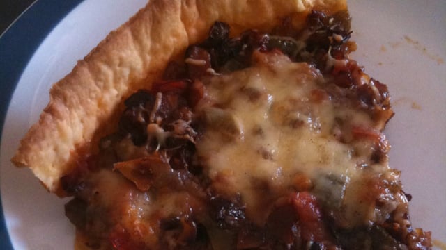 Déposer la pâte dans un moule à tarte et recouvrir du mélange. Saupoudrer de gruyère et recouvrir de tranches de mozzarella.