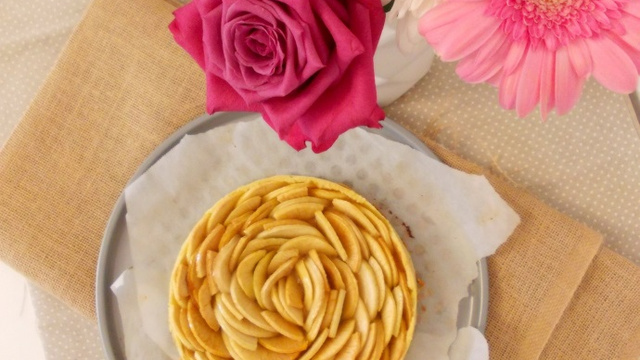 Montage et cuisson (jour-même) : Préchauffer le four à 180°C. Sortir la pâte du frigo et l'étaler. Beurrer un cercle à tarte de 22cm de diamètre. Et le poser sur une plaque de four recouverte de papier cuisson. Foncer le cercle à tarte avec la pâte. Rectifier les bords. Replacer le tout au congélateur pour 20mn. Éplucher et couper en tranches les pommes restantes (Jonagold, Granny Smith et Golden). Sortir la pâte du frigo. Y étaler la compote et lisser. Disposer les pommes sur la tarte les unes derrières les autres en commençant par l'extérieur. Saupoudrer le tout de sucre vanillé. Enfourner pour 45mn en surveillant la cuisson. Bien placer la tarte dans le bas du four. Pour ne pas que les pommes brûlent.