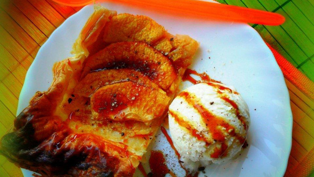 Badigeonner de miel liquide et mettre au four 30 min à 180°C jusqu'a ce que les pommes soit dorées.