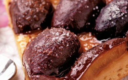 Je lave les quetsches et je les dénoyaute en les ouvrant en 2 sans séparer les deux moitiés. - 3