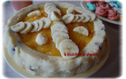 Voici ma tarte de semoule nappée de marmelade d'orange et décorée d'une banane.
