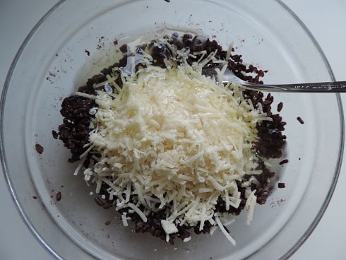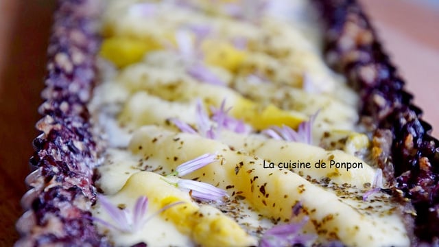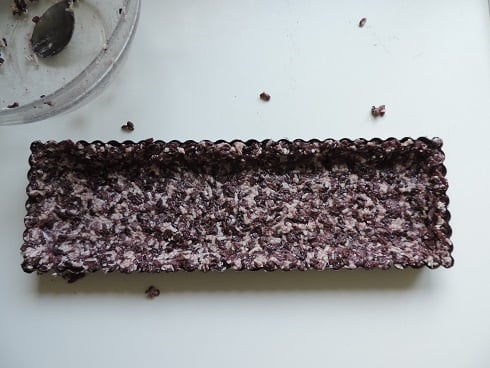 Je vous propose une pâte à tarte bien spéciale puisqu'elle est réalisée avec du riz cuit. On peut utiliser du riz blanc ou du riz noir. J'ai utilisé ce dernier pour la couleur.