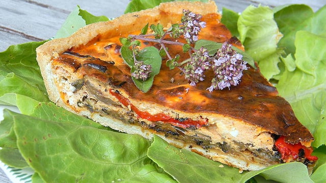 La garniture de cette tarte est composée de légumes passés au grill pour intensifier leur parfum. De la féta, de l'origan et du piment viennent compléter ce plat tout à fait estival et d'inspiration méditerranéenne. A déguster chaud ou froid.