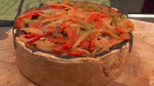 Une tarte épaisse, pleine de légumes et parfaite pour un dîner accompagnée d'une salade verte.