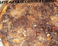 Dans un bol, mélangez la farine et le sucre. Saupoudrez la pâte. Pelez et coupez les bananes en rondelle d'1/2 cm et répartissez-les sur la pâte.