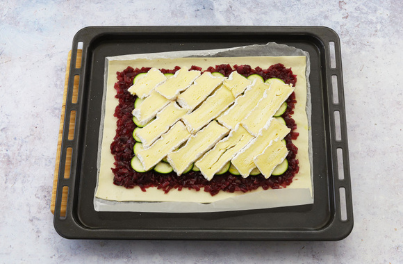 4Coupez le Camembert en tranches, répartissez-les sur les courgettes.