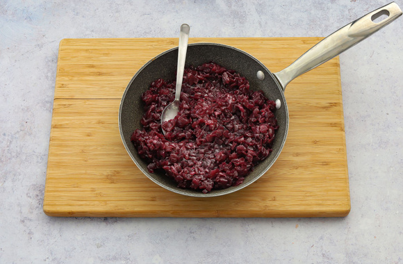 Ajoutez l’eau chaude et poursuivez la cuisson pendant environ 15 minutes, jusqu’à ce que l’eau soit absorbée. Remuez de temps en temps. Laissez refroidir.