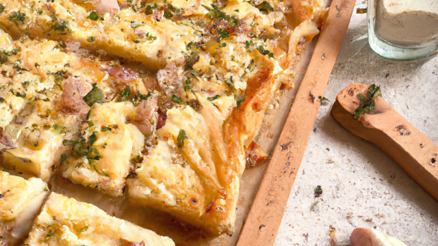 Découpez la tarte flambée en petites parts que vous dégusterez, sans couvert, entre amis.