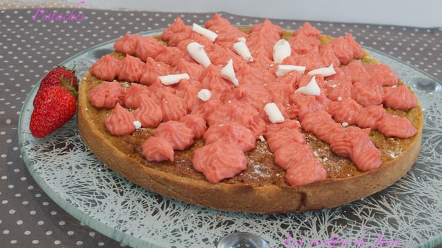 A l'aide d'une poche à douille munie d'une douille cannelée faites des petits dômes sur votre tarte et décorez avec des petites meringues ou émiéttées.