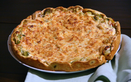 Sous une croûte croustillante se découvre un intérieur moelleux aux choux de Bruxelles, dés de jambon fumé et ricotta.