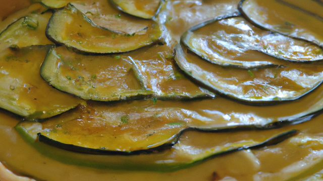 Eplucher la courgette, enlever les pépin, la couper en morceaux d'environ 2cm, les mettre sur la tarte.