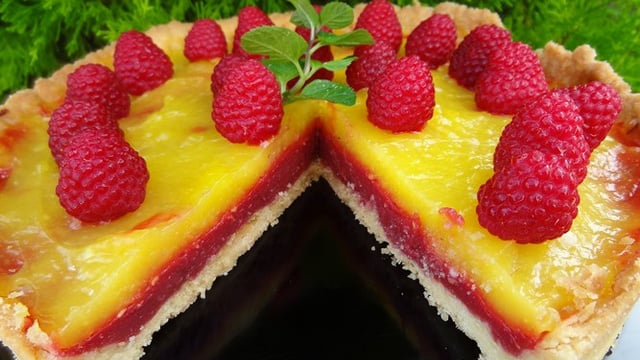 Étaler le framboises curd au fond de la tarte puis le lemon curd ou l'inverse (comme vous préférez!).