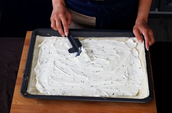 7Etalez la préparation à la ricotta sur la pâte filo, en laissant une bordure libre d'un pouce.
