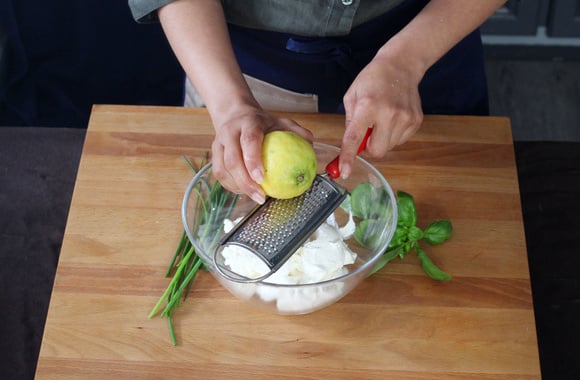 4Versez la ricotta dans un saladier, ajoutez le zeste de citron râpé.