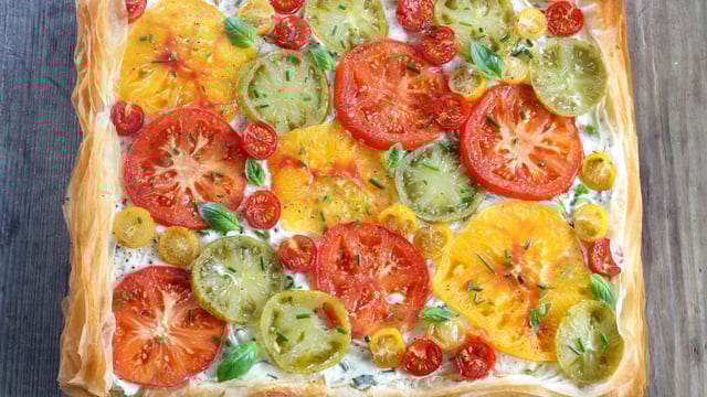 Vous aimez quand ça croustille ? Remplacez la pâte de vos tartes salées par de la pâte filo, comme dans cette tarte à la tomate dans laquelle on a utilisé plein de tomates de tailles et de couleurs differentes.