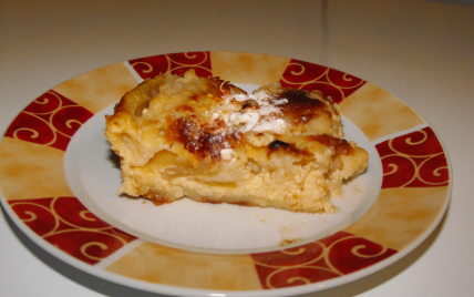 Eplucher et couper en lamelles les pommes. Les disposer au fond d'un pyrex beurré.