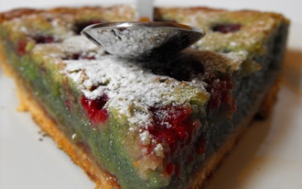 Une garniture fondante et moelleuse parfumée à la pistache, dans laquelle se trouvent de délicieuses framboises légèrement acidulées. Le tout sur une bonne pâte sablée.