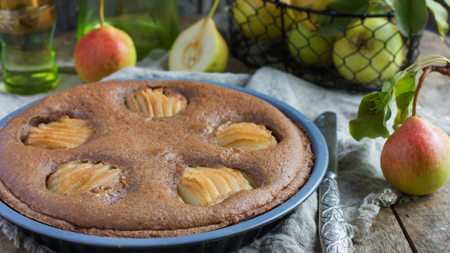 Déposer cette préparation sur le chocolat,puis mettre les poires autour pour faire une belle présentation et ciseler le dessus des poires avec une pointe de couteau pour donner un effet de boulanger(facultatif),ensuite mettre quelques amandes effilées dessus et mettre au four 220° préalablement préchauffé pendant 25 mn.
