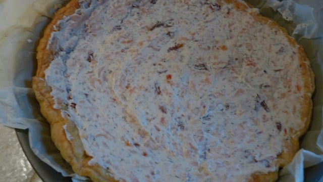 Garnir le fond de tarte du mélange et manger.