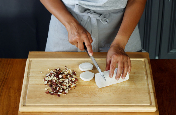 5Découpez la bûchette de fromage de chèvre en rondelles.