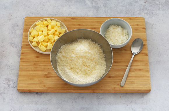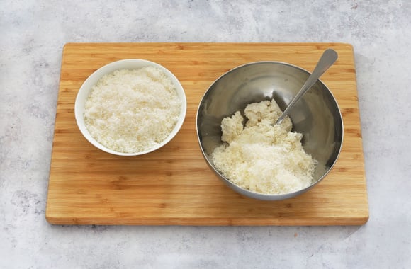 Faites de même avec la quantité de Grana Padano pour la garniture, versez dans un autre bol.