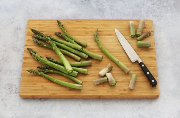 Lavez les asperges, ôtez la partie dure, grattez-les.