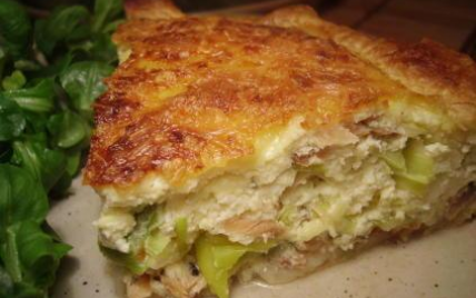 Mettre la pâte dans un plat à tarte . Couper en morceaux le saumon fumé et le mettre au font du plat. Faire revenir à la poêle le blanc des poireaux coupé en morceaux et couvrir le saumon avec. Préparer dans un saladier la crème fraîche,le gruyère,les oeufs,le sel, le poivre et tout battre. Cuire au four à 170°C pendant 40 minutes.