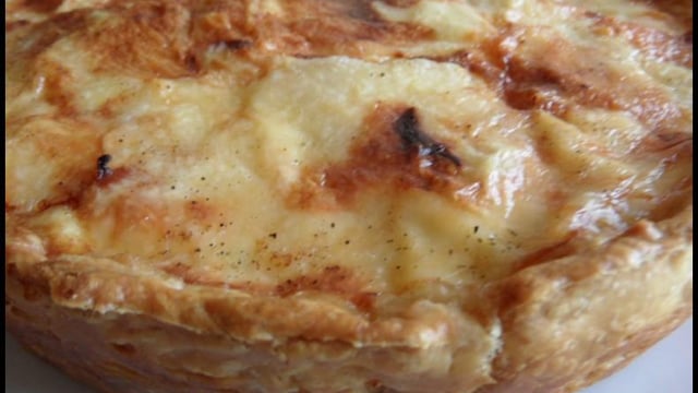 Une tarte savoureuse à base de pommes de terre et fromage à raclette.