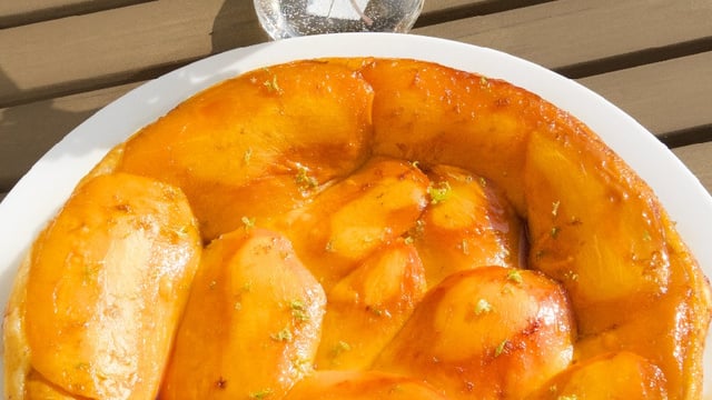 Tarte tatin à la mangue et au citron vert.
