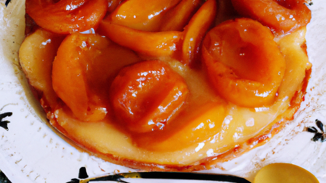 Une délicieuse tarte tatin a l'abricôt servis avec une boules de glace