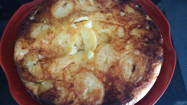 Cuire les pommes de terre dans leur peau. Une fois cuites les éplucher et les couper en rondelles épaisses. Les disposer dans une moule à tarte.