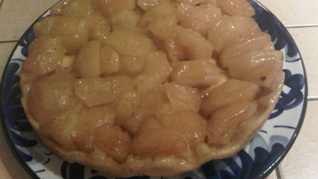 Tarte tatin au beurre salé et sucre vanillé.