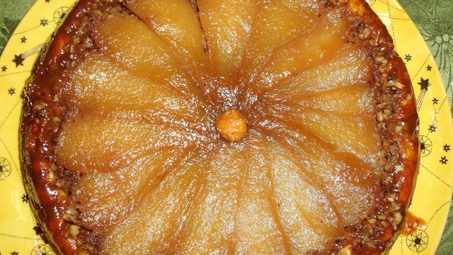 Une variante de la célèbre tarte des sœurs Tatin, qui allie la douceur de la poire au caramel et aux pépites de noix de macadamia.