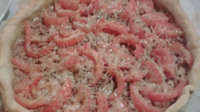 Laver les tomates, les vider et les couper en morceau puis les disposer sur la tarte.