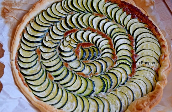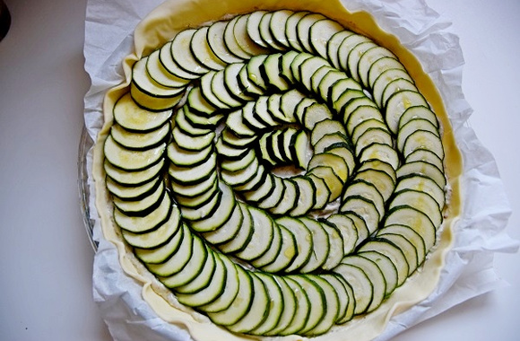 1Laver et couper les courgettes en fines tranches. Disposer la pâte feuilletée dans un moule à tarte en gardant le papier cuisson dessous. Piquer le fond avec une fourchette. Dans un bol, mélanger le gorgonzola, la crème et la moutarde et étendre ce mélange sur toute la surface de la pâte. Garnir ensuite avec les rondelles de courgette. Parsemer un peu de fleur de sel et un filet d'huile d'olive.