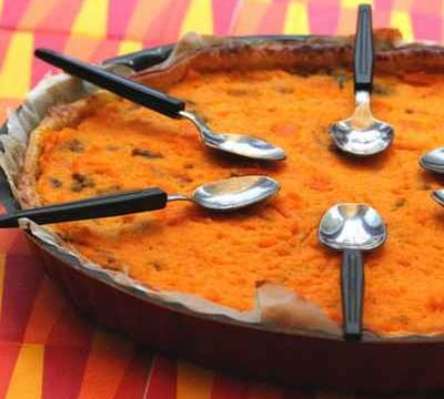 Enfournez pendant 25 minutes, saupoudrez d'un peu de mimolette râpée et laissez gratiner encore une dizaine de minutes.