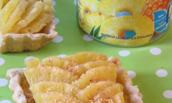Ces tartelettes à l'ananas St Mamet sont fondantes et juteuses. Le pralin apporte une touche en plus.