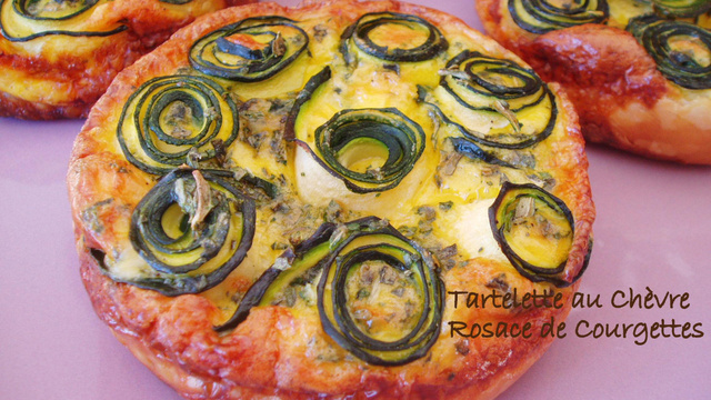 Avec une mandoline, faites de très fines tranches de courgettes dans la longueur en gardant la peau de la courgette, faites les blanchir 5 min dans l'eau bouillante, égouttez-les puis roulez-les sur elles mêmes, et disposez-les serrées dans les tartelettes.