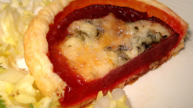 Une belle recette d'entrée chaude associant harmonieusement les saveurs et couleurs de la betterave et du roquefort ....