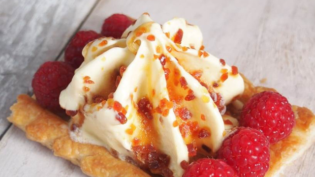 Disposez les framboises et déguster aussitôt.