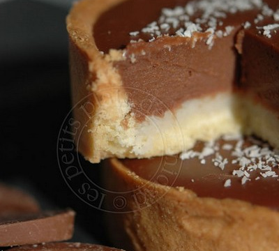 Pour le fond de coco j'ai utilisé de la confiture de noix de coco (en grande surface, rayon exotique). Par tartelette j'ai mis environ 1 grosse cuillère à soupe bombée.