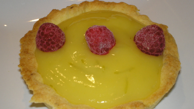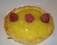 Quand les fonds de tartelettes ont refroidis, versez le mélange au citron, et décorez avec quelques framboises.